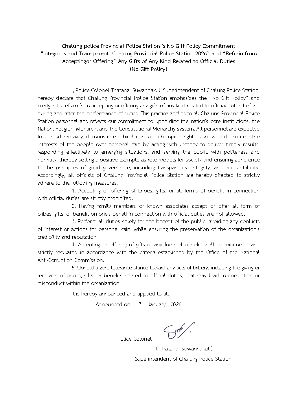 วันที่ 22 ม.ค.2569 เวลา 14.00 น. พ.ต.อ.ธาธนา สุวรรณกูล ผกก.สภ.ฉลุง ,พ.ต.ท.รัชอานนท์ ภูริภากร รองผกก.