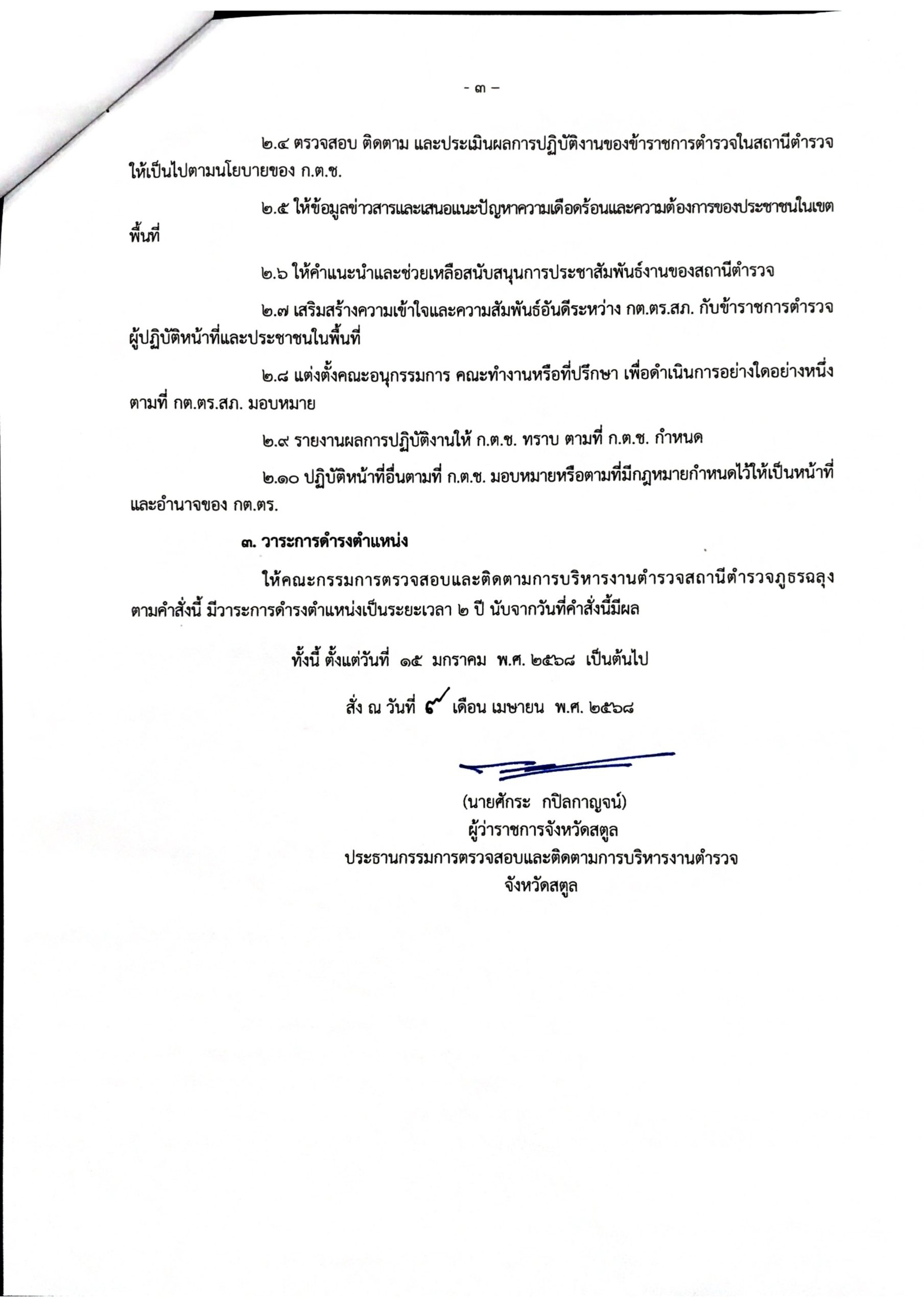 คำสั่ง แต่งตั้งคณะกรรมการตรวจสอบและติดตามการบริหารงานตำรวจสถานีตำรวจภูธรฉลุง