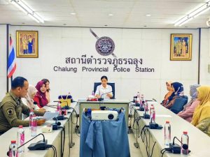 ภายใต้การอำนวยการ พ.ต.อ.บุญเลิศ ตรัสศิริ ผกก.สภ.ฉลุง มอบหมายให้นางน้ำทิพย์ ตรัสศิริ ประธานแม่บ้านตำรวจภูธรฉลุงเรียกคณะแม่บ้าน สภ.ฉลุง ร่วมประชุมเพื่อกำหนดเแนวทางในการสนับสนุนกิจกรรมส่งเสริมคุณภาพชีวิตข้าราชการตำรวจ และครอบครัวสถานีตำรวจภูธรฉลุง เพื่อป้องกันและแก้ไขปัญหาข้าราชการตำรวจกระทำอัตวินิบาตกรรม(การฆ่าตัวตาย)