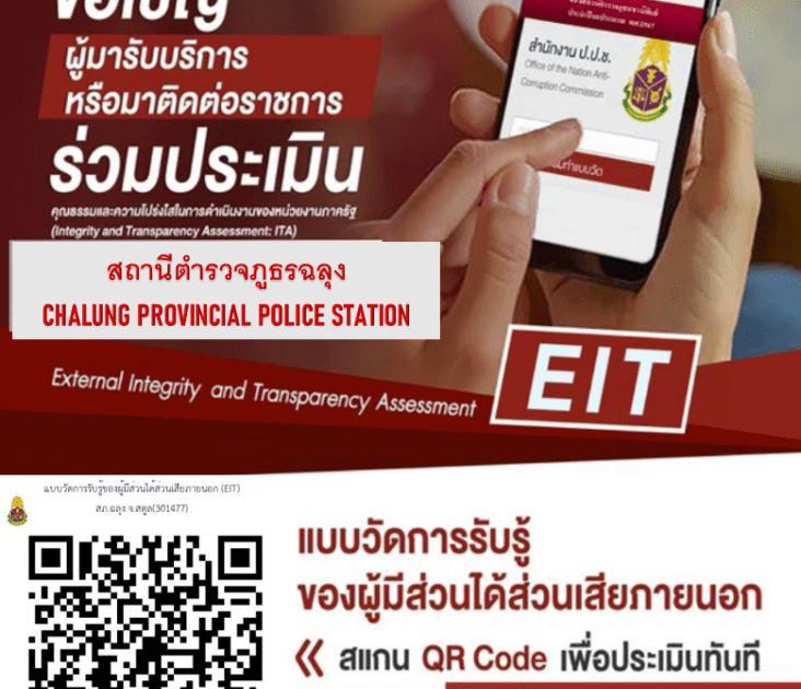 แบบวัดการรับรู้ของผู้มีส่วนได้ส่วนเสียภายนอก (External Integrity and Transparency Assessment : EIT ) 2025 สำหรับนำไปพัฒนาปรับปรุงการให้บริการ คุณภาพการดำเนินงาน , การใช้อำนาจตำแหน่งหน้าที่ตามกระบวนการยุติธรรมด้วยความเป็นธรรม , ประสิทธิภาพการสื่อสารและการพัฒนาช่องทางการสื่อสารต่างๆ และนำไปปรับปรุงระบบการทำงาน โดยสามารถเข้าไปทำแบบประเมินได้ที่ https://itap.nacc.go.th/s/F98365390 หรือ QR Code (ตั้งแต่วันที่ 1 มกราคม – 30 มิถุนายน 2568)
