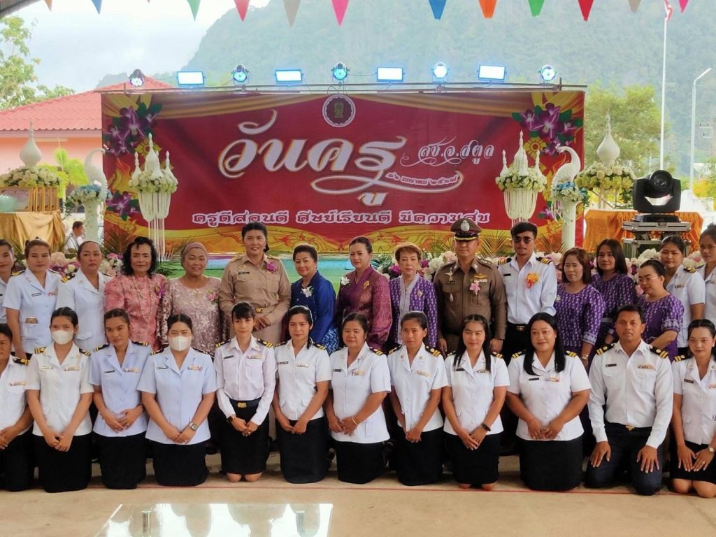 เมื่อวันที่ 16 ม.ค.2567 เวลา 08.30 น. พ.ต.อ.ธรรศภณ สาราพฤษ รอง ผบก.ภ.จว.สตูล พร้อม พ.ต.ท.อานิก อินดำ รอง ผกก.ป.สภ.ฉลุง, พ.ต.ท.เกษม พูลสวัสดิ์ สว.อก.สภ.ฉลุง ร่วมพิธีรเนื่องในงานวันครู ซึ่งจัดขึ้นโดยสำนักงานการศึกษาเอกชนจังหวัดสตูล ครั้งที่1 พ.ศ.2567 ณ อาคารเอนกประสงค์ ทางเข้าสนามกีฬาเทศบาลตำบลฉลุง อ.เมือง จว.สตูล