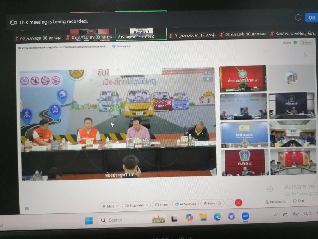 พ.ต.ท.รัชอาานท์ ภูริภากร รอง ผกก.ป.สภ.ฉลุง พร้อมเจ้าหน้าที่งานจราจร และงานป้องกันปราบปราม ร่วมประชุม การประชุมเรื่องศูนย์อำนวยการป้องกันและลดอุบัติเหตุทางถนนช่วงเทศกาลสงกรานต์ พ.ศ.๒๕๖๘ โดย พล.ต.ต.สาธิต พลพินิจรอง ผบช.ภ.๙นั่งเป็นประธานรูปแบบ: ประชุม conference กับ ตร.