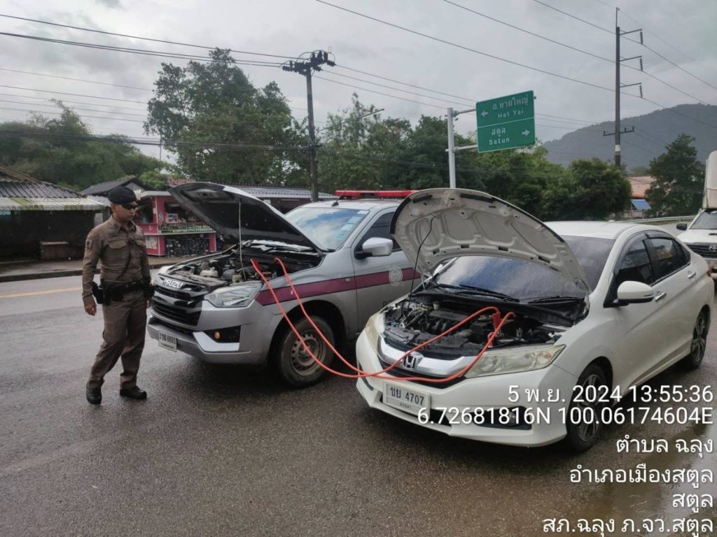 สายตรวจรถยนต์ สภ.ฉลุง ได้ให้การช่วยเหลือประชาชน เหตุรถยนต์สตาร์ทไม่ติด โดยการต่อพ่วงแบตเตอรี่ จนสามารถสตาร์ทเครื่องยนต์ติด และสามารถเดินทางต่อไปได้เหตุเกิดบริเวณหน้าร้านฉลุงอะไหล่ยนต์ ต.ฉลุง อ.เมืองสตูล จว.สตูล