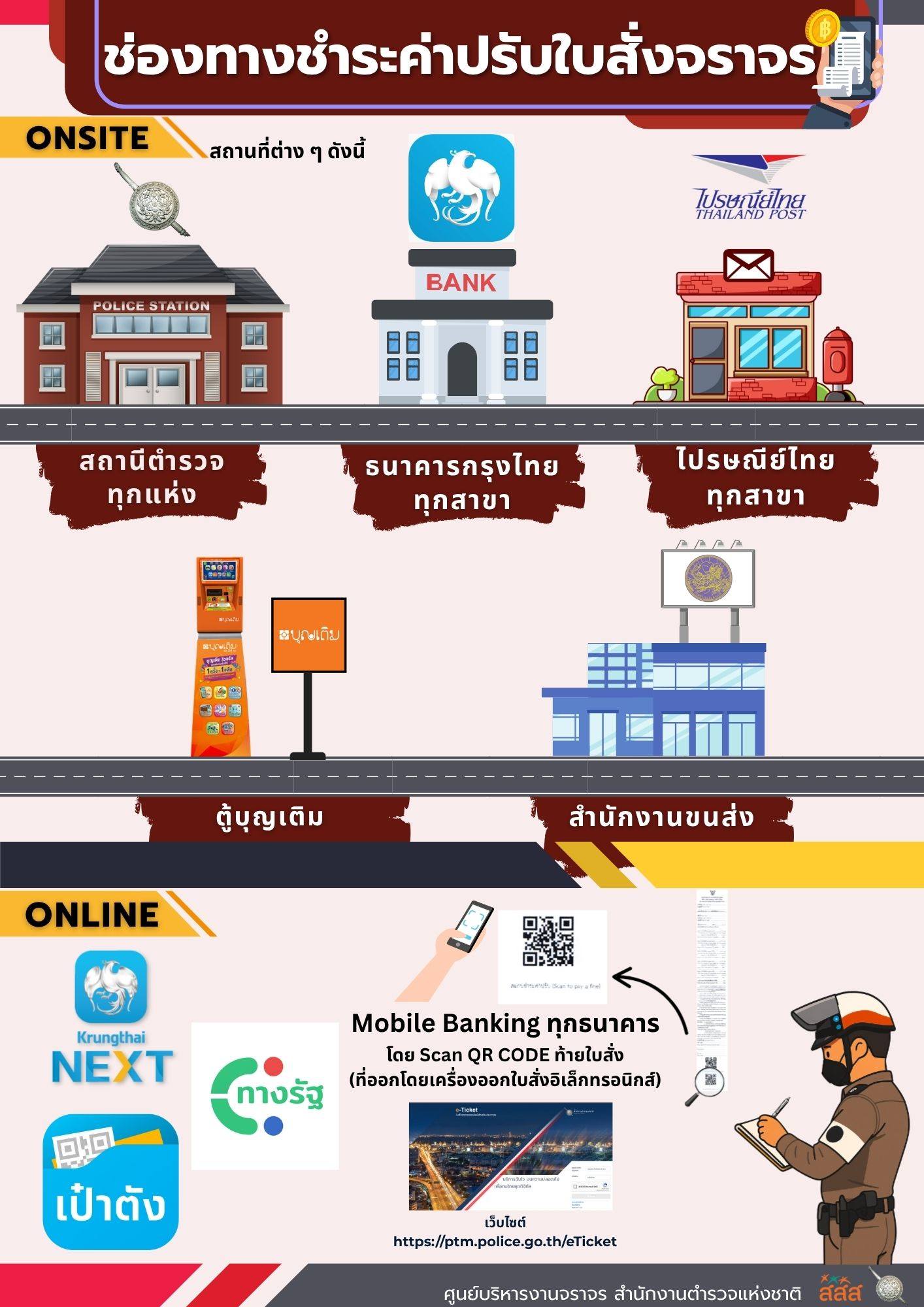 ถ้าสงสัยว่าเราโดนใบสั่งหรือไม่ เช็คได้เองง่ายๆ 20 มีนาคม 2026 โดย admin / ข่าวประชาสัมพันธ์,ข่าวฝากประชาสัมพันธ์,งานจราจร,ประกาศ,ไม่มีหมวดหมู่ ถ้าสงสัยว่าเราโดนใบสั่งหรือไม่ เช็คได้เองง่ายๆ ที่เว็บไซต์ : https://ptm.police.go.th/eTicket