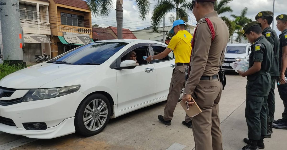 ภายใต้การอำนวยการของ พ.ต.อ.ธาธนา สุวรรณกูล ผกก. สภ.ฉลุง, พ.ต.ท.รัชอานนท์ ภูริภากร รอง ผกก.ป.สภ.ฉลุง ได้มอบหมายให้ ว่าที่ พ.ต.ต.สมพร รัตนมุณี สวป.สภ.ฉลุง ,จิตอาสา สภ.ฉลุง พร้อมด้วยนักเรียนฝึกปฏิบัติงาน ประชาสัมพันธ์ การขับขี่รถอย่างปลอดภัย ในช่วงเทศกาลสงกรานต์ 2568 พร้อมแจกน้ำดื่ม บริการแก่ผู้ขับขี่รถ