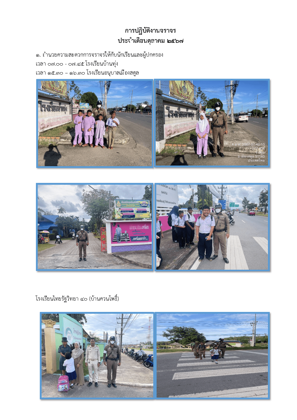 ผลการปฏิบัติงานจราจร ประจำเดือน ตุลาคม 2567