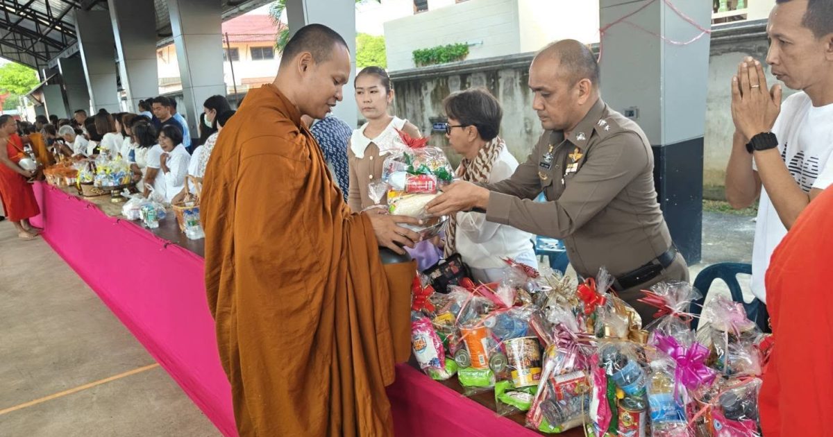 พ.ต.อ.ธาธนา สุวรรณกูล ผกก.สภ.ฉลุง ร่วมพิธีทำบุญตักบาตรถวายข้าวสารอาหารแห้งให้แก่พระสงฆ์ เนื่องในวันขึ้นปีใหม่ พ.ศ.2569 พร้อมร่วมเป็นเกียรติรับมอบของขวัญ จากวัดดุลยาราม (วัดดุลฉลุง) ให้แก่ประชาชนที่มาร่วมพิธีทำบุญตักบาตร วันขึ้นปีใหม่ พ.ศ.2569
