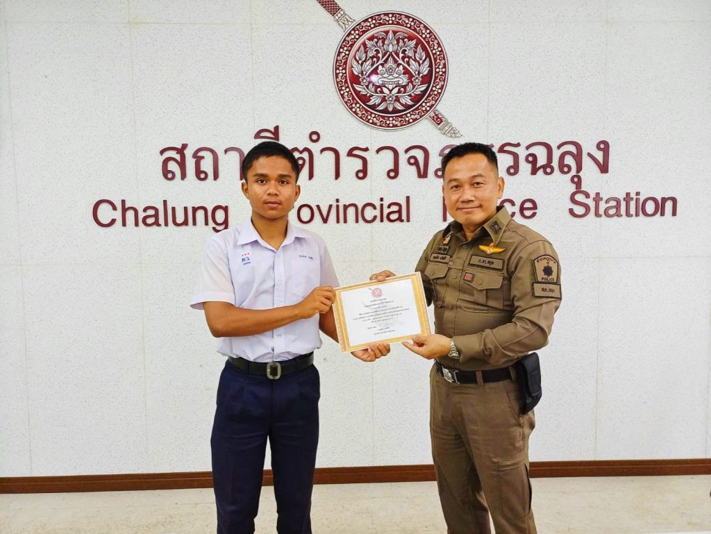พ.ต.อ.บุญเลิศ ตรัสศิริผกก.สภ.ฉลุง ทำพิธีมอบเกียรติบัตรให้แก่ นักเรียนโรงเรียนควนโดนวิทยา ที่ผ่านการฝึกประสบการณ์ด้านการบริการประชาชนในสถานีตำรวจ ,การประชาสัมพันธ์ ,การรับแจ้งความเบื้องต้น และด้านการอำนวยความยุติธรรม พร้อมกล่าวให้คำแนะนำในด้านต่างๆ โดยฝึกงานระหว่างวันที่ 14 – 18 ต.ค.2567 ณ สถานีตำรวจภูธรฉลุง ต.ฉลุง อ.เมือง จว.สตูล