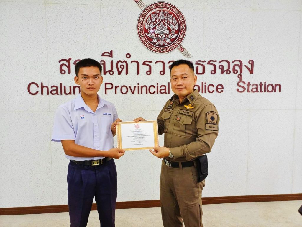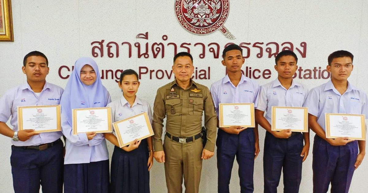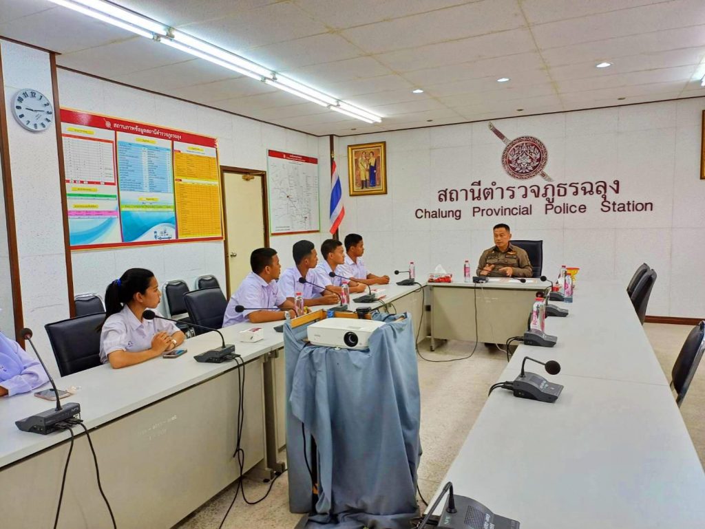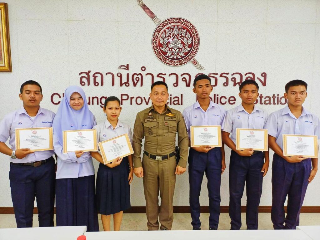 พ.ต.อ.บุญเลิศ ตรัสศิริผกก.สภ.ฉลุง ทำพิธีมอบเกียรติบัตรให้แก่ นักเรียนโรงเรียนควนโดนวิทยา ที่ผ่านการฝึกประสบการณ์ด้านการบริการประชาชนในสถานีตำรวจ ,การประชาสัมพันธ์ ,การรับแจ้งความเบื้องต้น และด้านการอำนวยความยุติธรรม พร้อมกล่าวให้คำแนะนำในด้านต่างๆ โดยฝึกงานระหว่างวันที่ 14 – 18 ต.ค.2567 ณ สถานีตำรวจภูธรฉลุง ต.ฉลุง อ.เมือง จว.สตูล