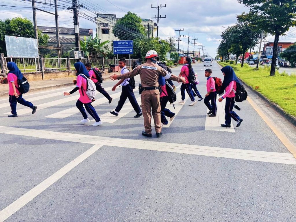 สั่งการให้สายตรวจจราจร และ อส.จร.อำนวยความสะดวกการจราจรหน้าโรงเรียนอนุบาลเมืองสตูล ต.ฉลุง อ.เมืองสตูล จว.สตูล