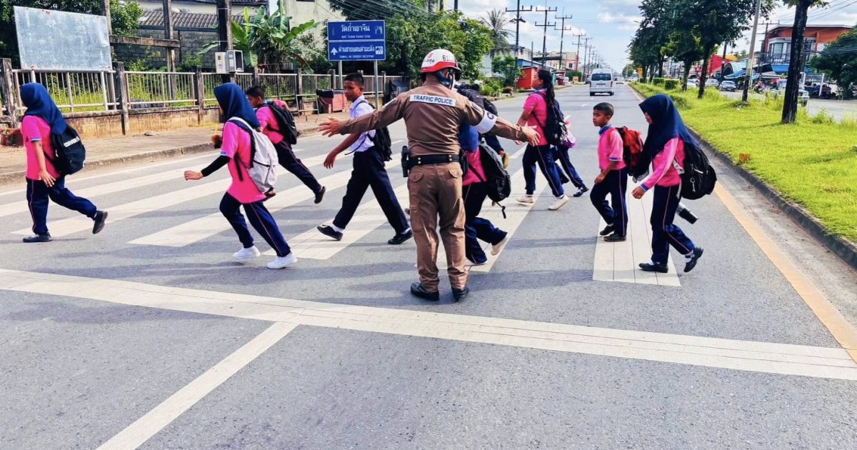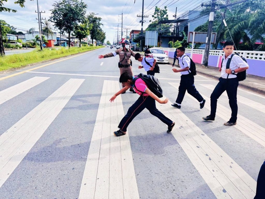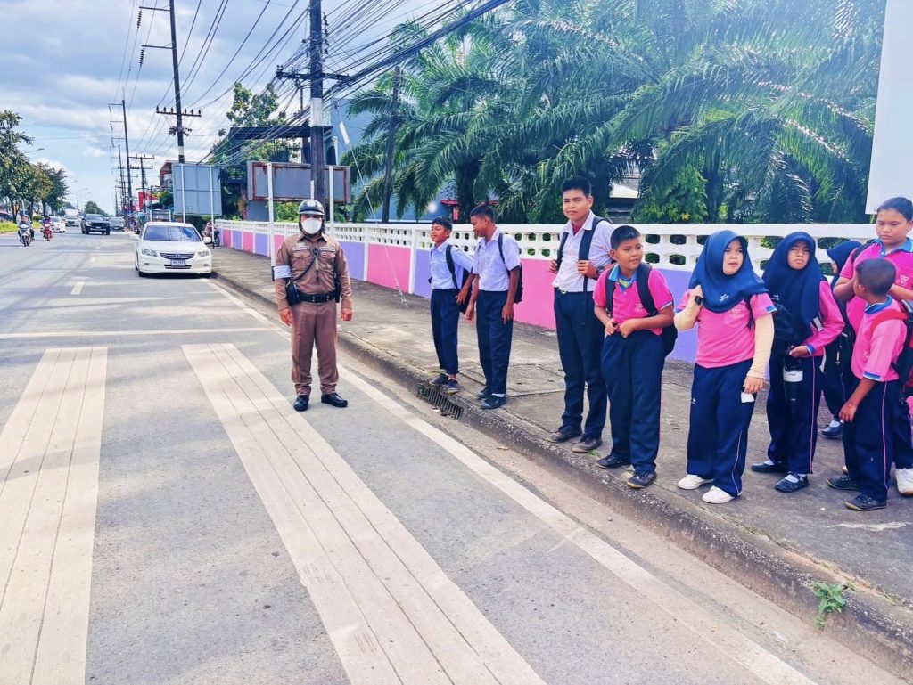สั่งการให้สายตรวจจราจร และ อส.จร.อำนวยความสะดวกการจราจรหน้าโรงเรียนอนุบาลเมืองสตูล ต.ฉลุง อ.เมืองสตูล จว.สตูล