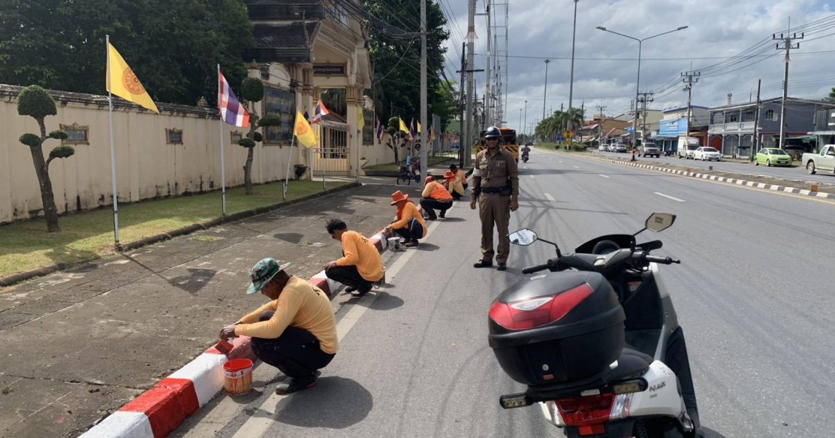 อำนวยความสะดวกการจราจรให้แขวงการทางเพื่อทาเส้นขาวแดง