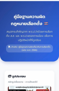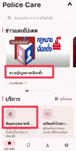 และเพื่อเป็นการให้ความรู้ประชาชนในการปฏิบัติตนที่ถูกต้องในการลงคะแนนเลือกตั้ง แอปพลิเคชัน “POLICE CARE” ได้เพิ่มเติมการอัปเดตบริการ “ข้อมูลกฎหมายเลือกตั้ง” โดยเน้นความผิดที่เกี่ยวข้องกับประชาชนและพบการกระทำความผิดบ่อยครั้ง เช่น ความผิดฐานนำบัตรออกจากสถานที่เลือกตั้ง ถ่ายภาพ ทำลาย ขายเสียง ฯลฯ จัดเรียงข้อมูลฐานความผิดเป็นหมวดหมู่ เพิ่มความสะดวกให้ประชาชนในการใช้งาน