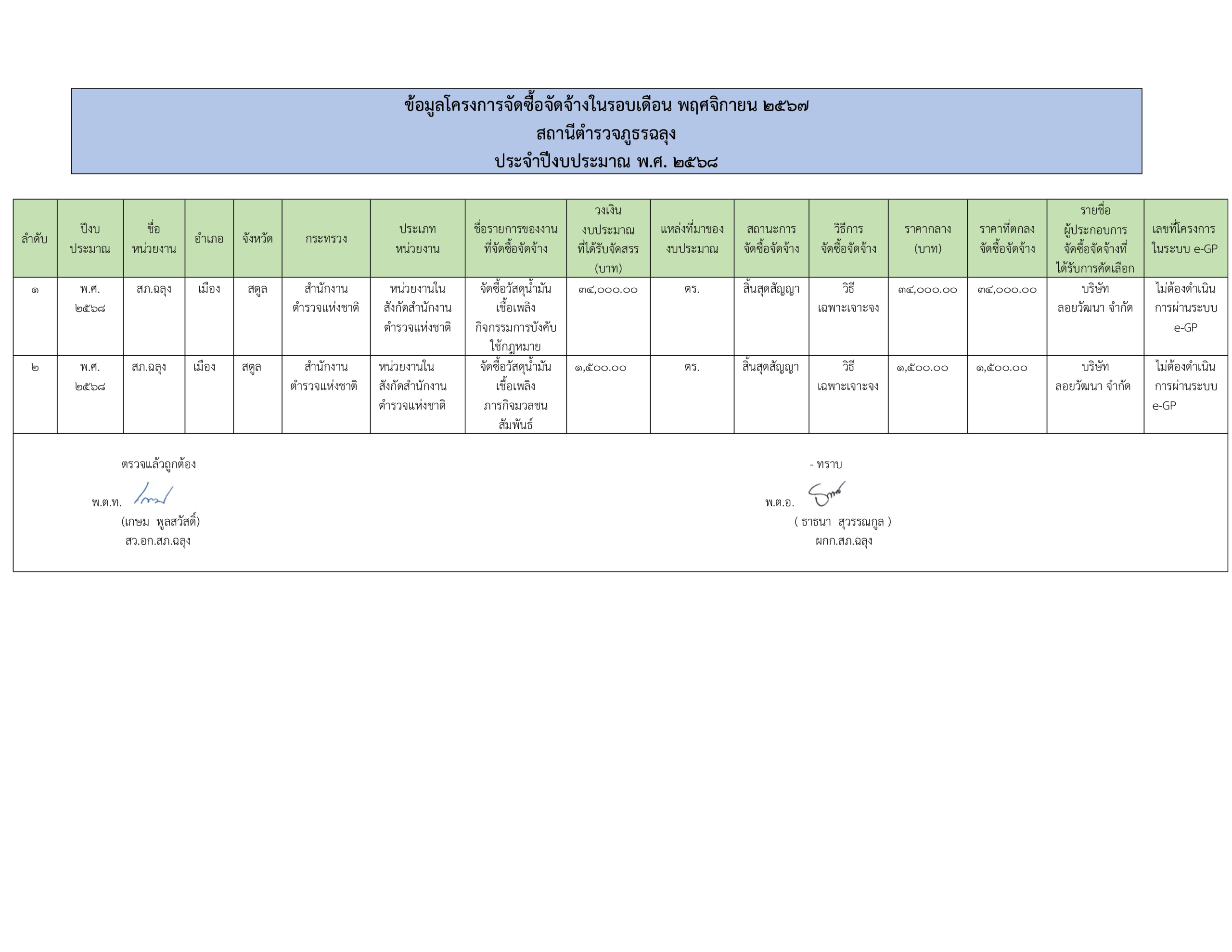 สรุปผลการดำเนินการจัดซื้อจัดจ้างในรอบเดือน พฤศจิกายน 2567