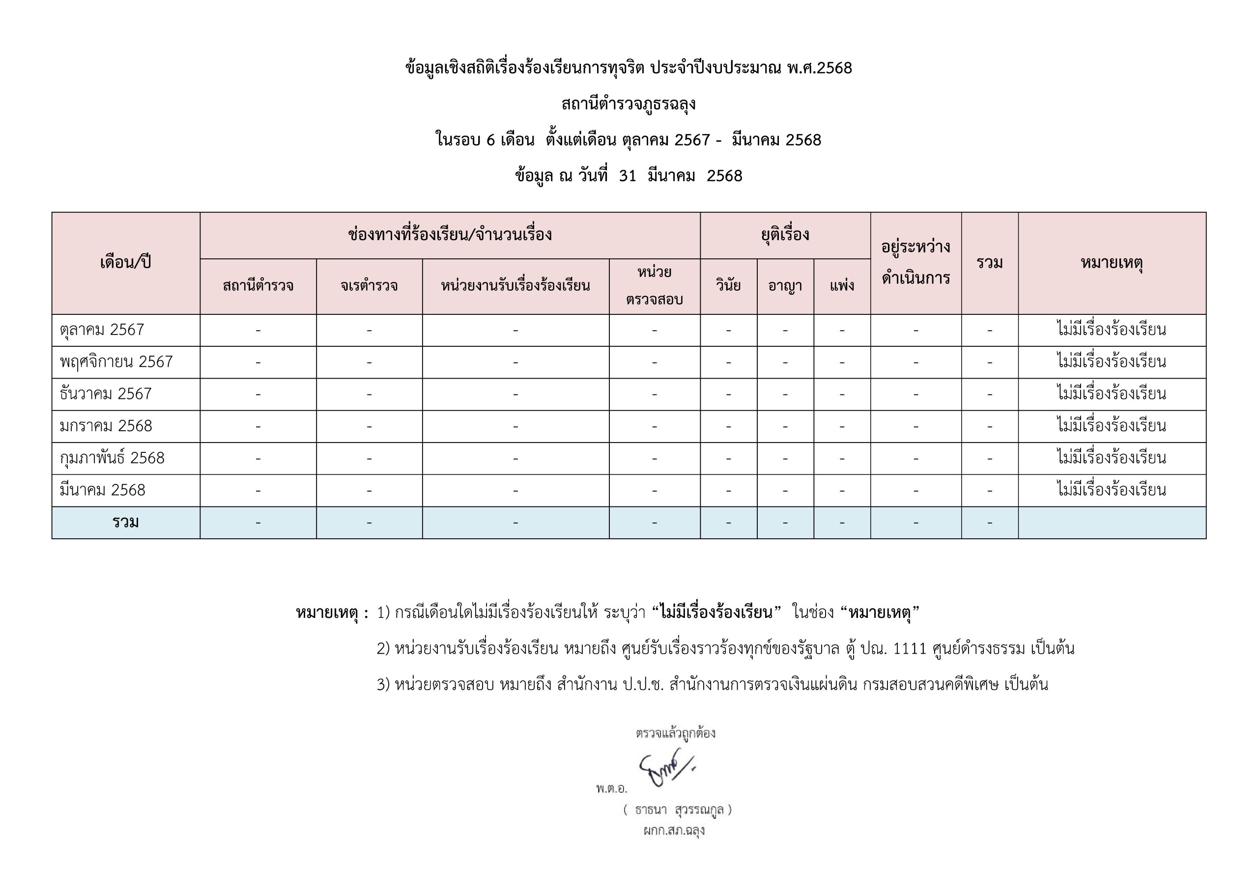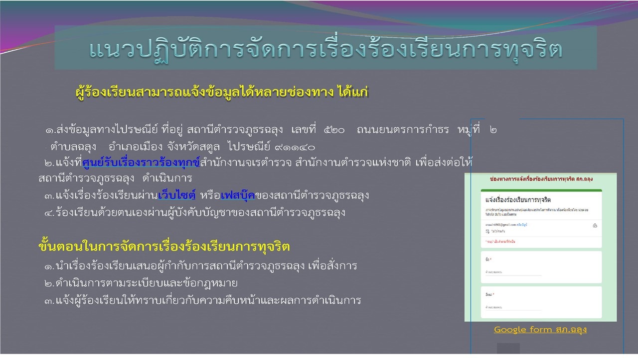 ช่องทางการแจ้งเรื่องร้องเรียนการทุจริต สภ.ฉลุง