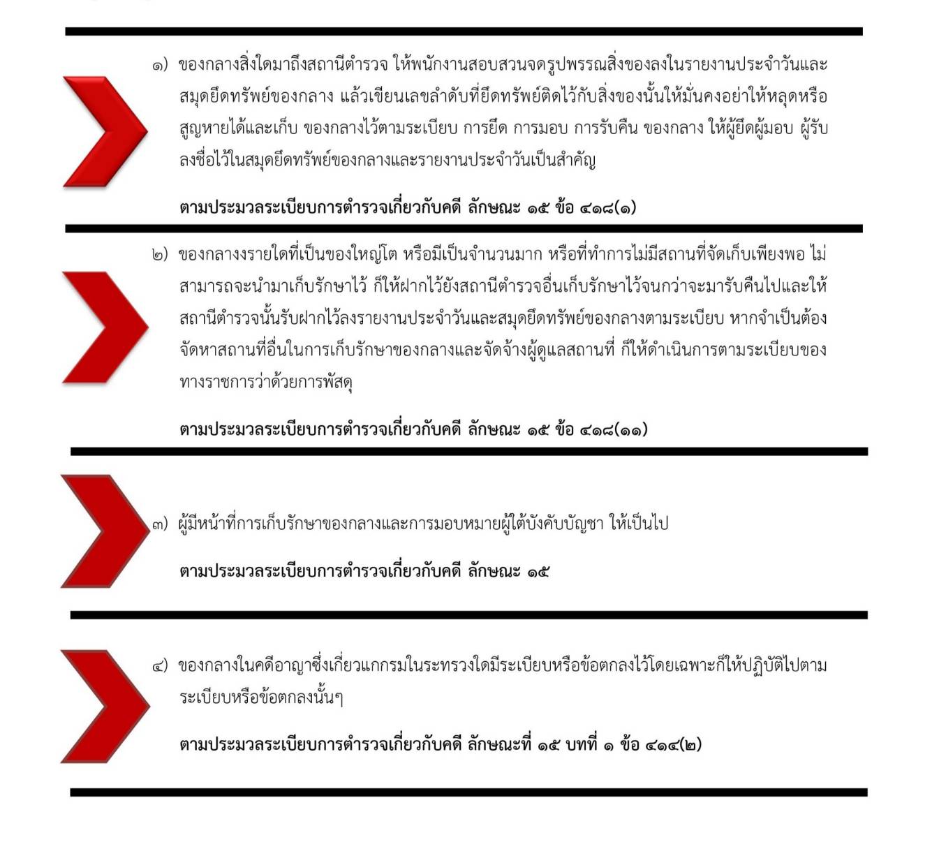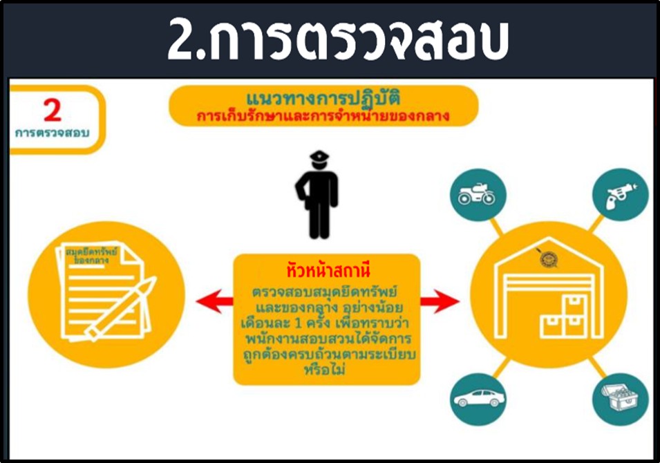 แสดงการวางระบบการจัดเก็บรักษา ของกลางที่ยึด อายัด เพื่อป้องกันไม่ให้ถูกปรับเปลี่ยน หรือไม่นำเข้าระบบ หรือเข้าระบบบางส่วน เพื่อแลกกับการเรียกรับผลประโยชน์ทั้งทางคดี และรับทรัพย์สิน มีระบบควบคุมที่เพียงพอ และเหมาะสมตามประเภทของกลางนั้นๆ