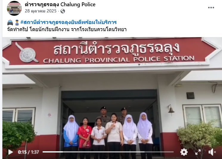 สถานีตำรวจภูธรฉลุงยินดีพร้อมให้บริการ จัดทำคริป โดยนักเรียนฝึกงาน จากโรงเรียนควนโดนวิทยา