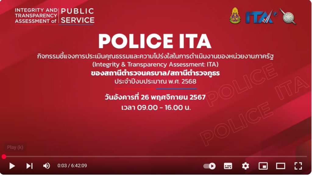 พ.ต.อ.บุญเลิศ ตรัสศิริ ผกก.สภ.ฉลุง พร้อมด้วยข้าราชการตำรวจผู้เกี่ยวข้อง เข้าร่วมกิจกรรมชี้แจงการประเมินคุณธรรมและความโปร่งใสในการดำเนินงานของหน่วยงานภาครัฐ (ITA) ของสถานีตำรวจ ประจำปีงบประมาณ พ.ศ. 2568 ในวันอังคารที่ 26 พฤศจิกายน 2567 เวลา 09.00 – 16.00 น. ในรูปแบบออนไลน์ผ่านระบบ Zoom ณ ห้องประชุม สภ.ฉลุง
