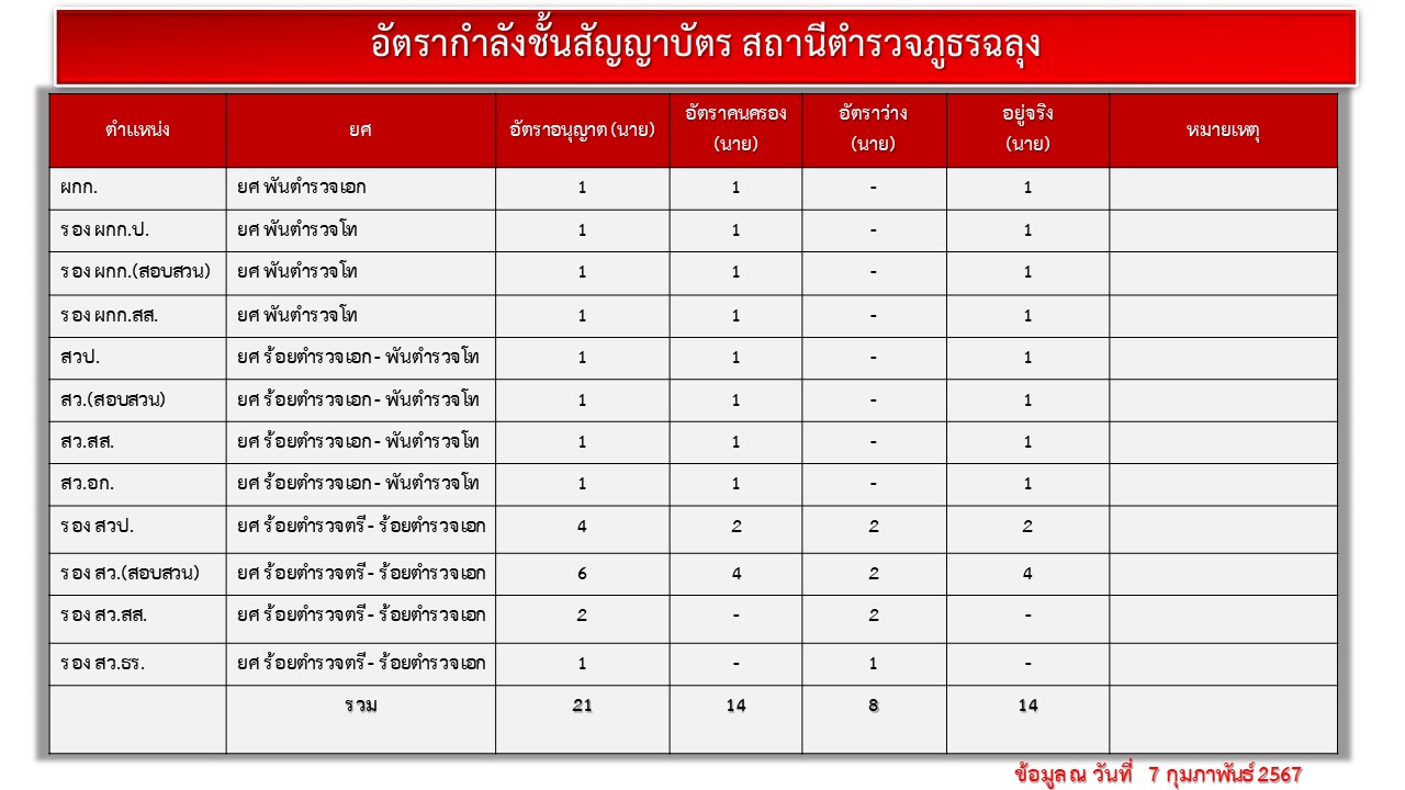 จัดทำข้อมูล ณ วันที่ 7 ก.พ.67