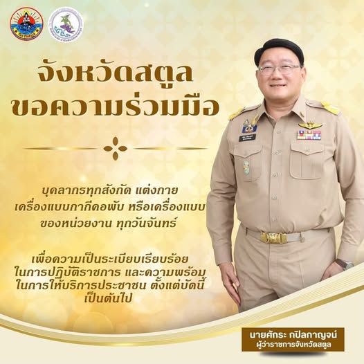 #ข่าวสตูล ผู้ว่าราชการจังหวัดสตูล ขอความร่วมมือแต่งกายปฏิบัติราชการ (บุคลากร ทุกสังกัด แต่งกาย เครื่