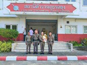 วันที่ 14 พ.ย.2567 เวลา 17.15 น. พ.ต.อ.บุญเลิศ ตรัสศิริ ผกก.สภ.ฉลุง, พ.ต.ท.อานิก อินดำ รอง ผกก.ป.สภ.